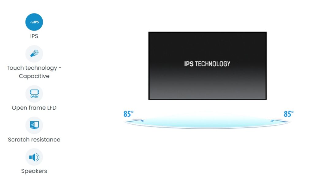 With 1920×1080 Full HD resolution and Projective Capacitive 10 point touch technology, the ProLite TF2738MSC-B2 delivers seamless and accurate touch response. Featuring IPS LED LCD Screen technology, it offers exceptional colour performance and wide viewing angles. Its rugged bezel with edge-to-edge glass makes it very suitable for applications like table top integration. In addition, the screen comes with an IPX1 rating, making it water resistant from the front. Equipped with speakers and triple digital input (DVI, HDMI and DisplayPort). The ProLite TF2738MSC-B2 is an ideal screen for kiosk integrators and a perfect solution for Interactive Digital Signage, Instore Retail, Gaming and Interactive Presentations.