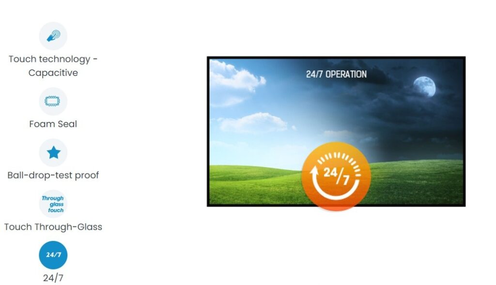 The ProLite TF3215MC-B2 with 30-point PCAP touch technology is a open frame monitor with an eye-catching edge-to-edge glass design. Thanks to this completely frame-less glass surface, it guarantees high durability and scratch resistance, making it perfect for kiosk systems and high-traffic public applications. The VA panel technology offers higher contrast and darker blacks.